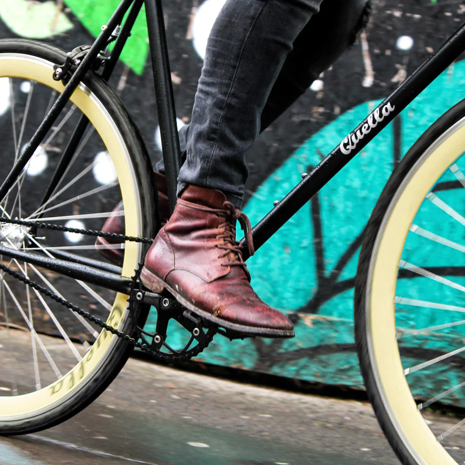 Sleek and minimalist, and with a 44/16 ratio, they are perfect for everyday urban bike riding. They are responsive, light, and fast and easy to maintain and use. Our single speed bikes can be ridden fixed gear (fixie) or as a single-speed with a freewheel sprocket as each bike is supplied with a flip-flop hub so the rider can choose what they prefer and change back at any time.