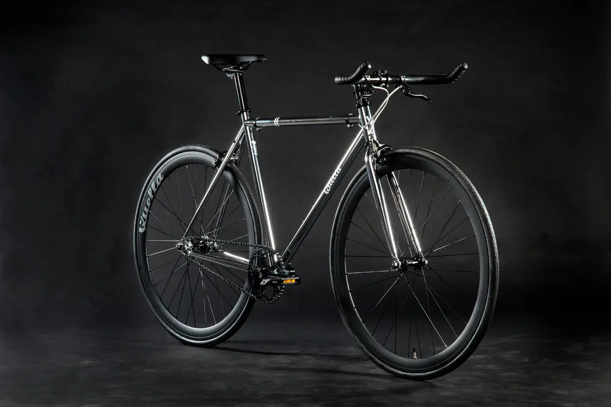The Imperial is the same high specification 4130 chromoly frame as the Varsity but the frame is electroplated in chrome for a unique finish. Contrasting black wheels & components complete the look that will set you apart from the crowd. This quick, low maintenance bike is the ultimate headturner!